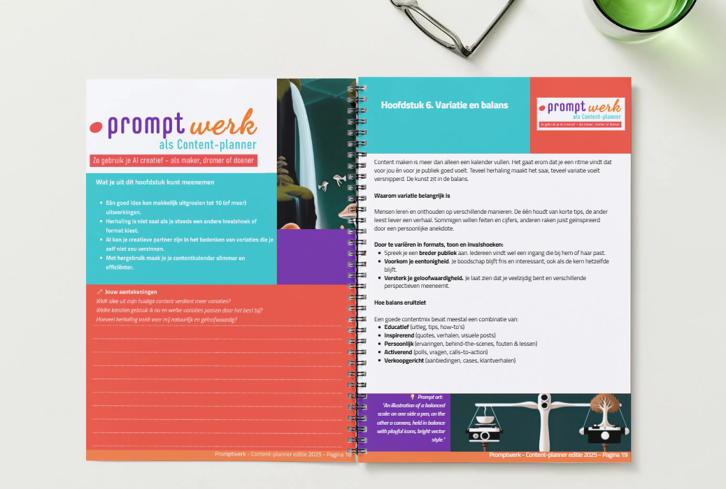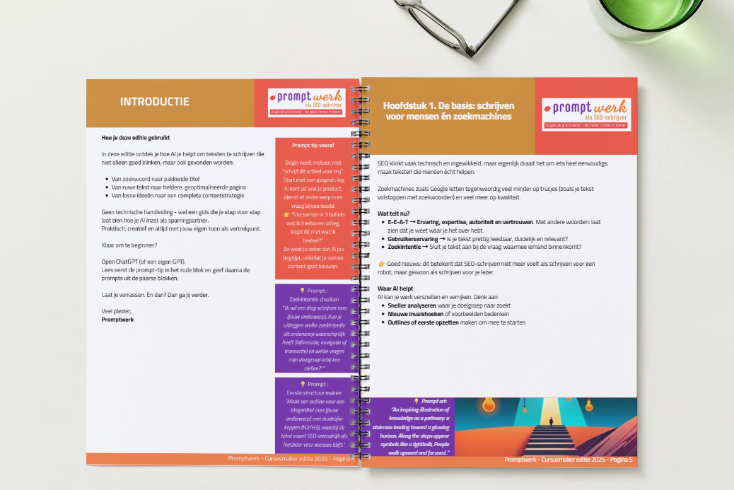 Je krijgt praktische prompts, slimme werkvormen en directe opdrachten.
